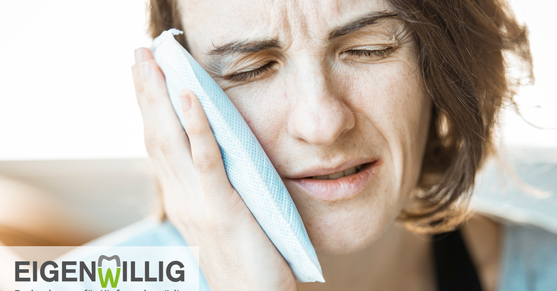 Ebenso ist ein kalter, nasser Lappen oder ein in ein Tuch gewickeltes Kühlpad an der Außenseite der Wange. Da die Kälte die Nervenaktivität hemmt, reduzieren sich Schwellungen und der Schmerz wird gelindert. Wichtig ist, die Haut nicht direkt mit den kalten Pads zu berühren. Die Kühlung sollte in Intervallen von 15 Minuten Kühlen und 10 Minuten Pause erfolgen.
